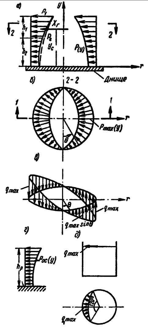 Рис. 2 - Гидродинамическое давление жидкости, дейвствующее на стенки и днище резервуара