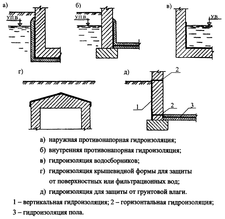 При выборе типа гидроизоляции необходимо учитывать механическое воздействие на гидроизоляцию, температурные воздействия, условия производства работ, дефицитность и стоимость материалов, а также сейсмичность района строительства.