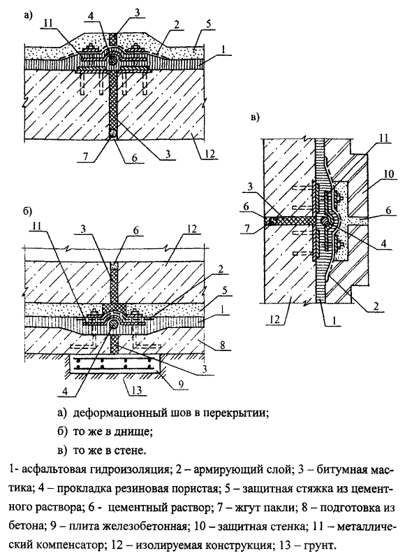 Гидроизоляция швов и уплотнений для оразличных условий приведены на рисунках ниже.