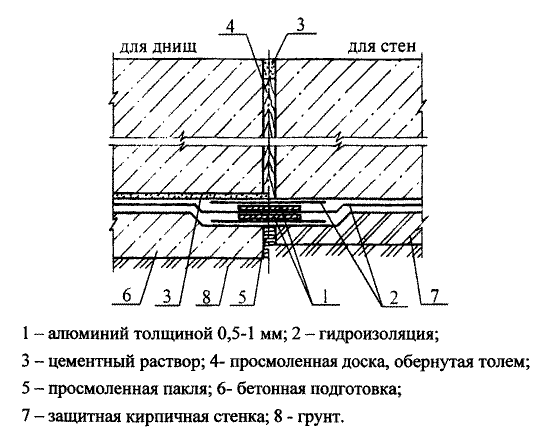Металлическую гидроизоляцию устраивают, как правило, с внутренней поверхности ограждающих конструкций, что дает возможность при эксплуатации устранять течь.