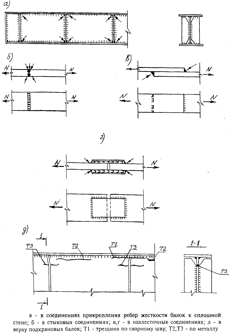 Рис. 4 - Места зарождения усталостных трещин в стальных конструкциях