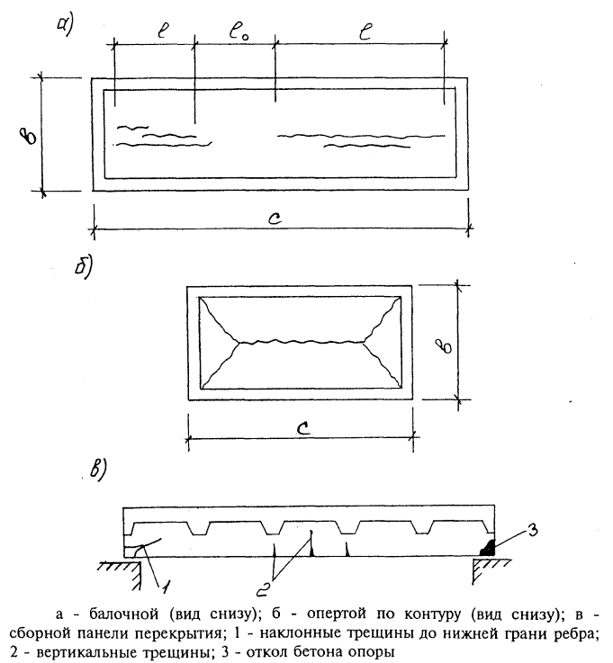 | 5 | Ширина раскрытия трещин в конструкциях перекрестия более 1 мм. Разрыв отдельных стержней арматуры в растянутой зоне. Прогибы изгибаемых элементов более 1/50 пролета. Разрушение отдельных конструкций перекрытия от перегрузки |