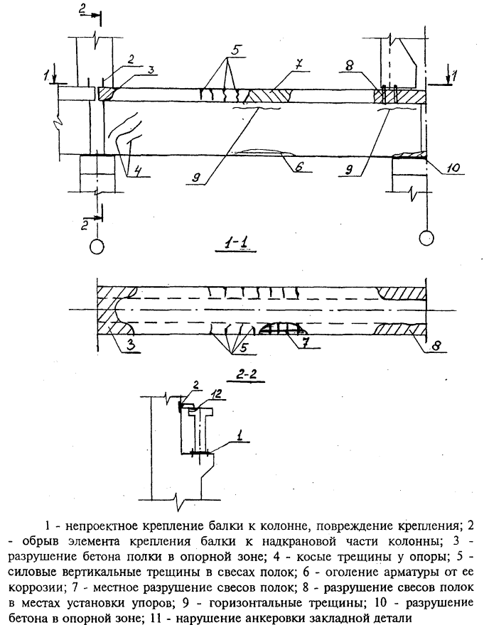 Рис. 12 - Характерные трещины ж.б. подкрановых балок