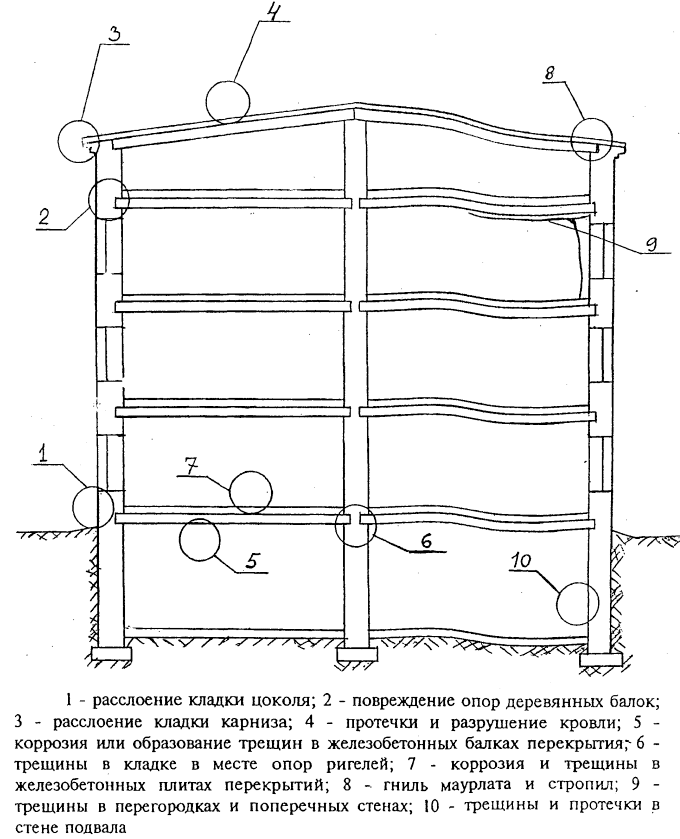 Рис. 21 - Характерные повреждения конструкций жилых и общественных зданий