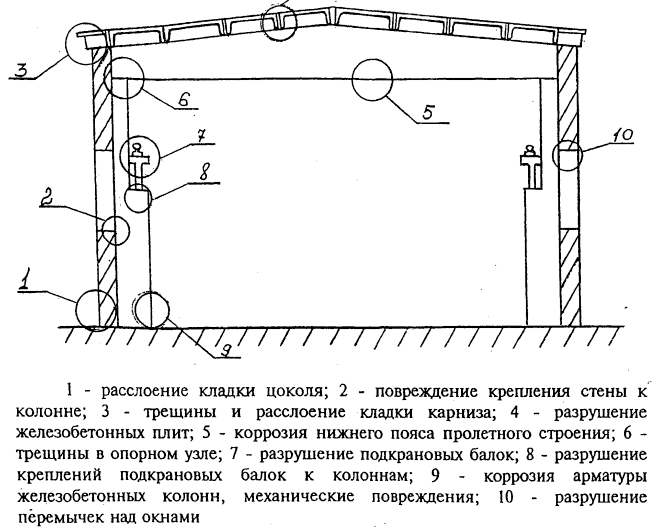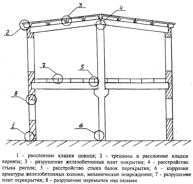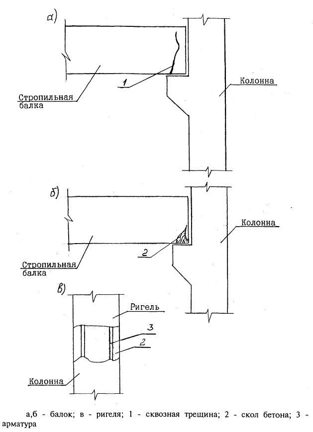 Рис. 23 - Характерные повреждения конструкций многоэтажных промышленных зданий