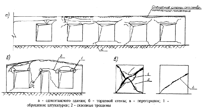 Рис. 17 - Характерные трещины в стенах зданий от осадки основания