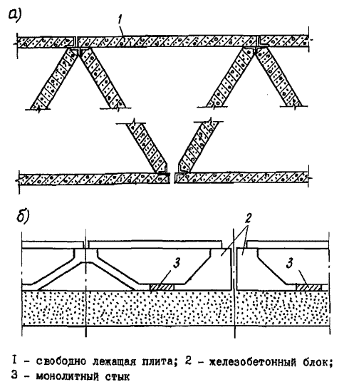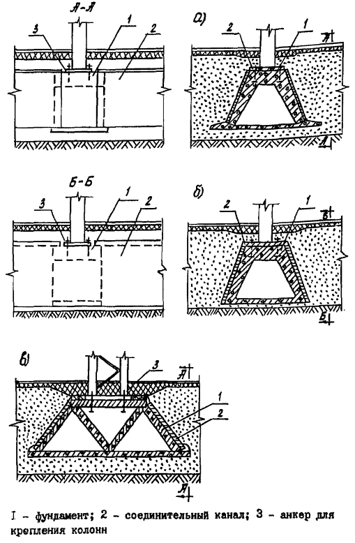 Столбчатые фундаменты могут монтироваться из складчатых (рис. 11а) или объемных элементов (рис. 11б), а также плоских панелей (рис. 11в). Соединительные каналы - из плоских плит (рис. 11а,в) или пространственных складчатых элементов (рис. 116).