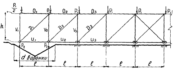 При образовании карстового провала под одним фундаментом или группой фундаментов последние цепестают воспринимать нагрузки от колонн, и в работу включаются связи.