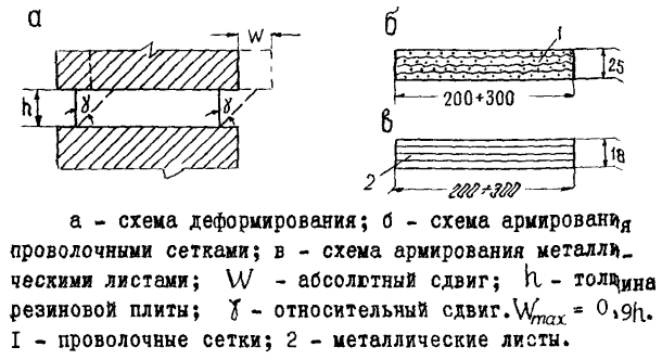 С целью улучшения условий работы строительных конструкций зданий рекомендуется применять новые виды опорных частей, изготавливаемых из новых синтетических материалов, а также из естественного каучука. На рис. 3 и 4 показаны такие опорные части, примененные для шарнирно-неподвижных (шаровых) опор. Новые виды опорных частей имеют ряд преимуществ по сравнению с известными металлическими: дешевизна, простота в монтаже, малая строительная высота, возможность линейных перемещений в различных направлениях в плоскости опоры и небольших угловых перемещений без появления значительных реактивных усилий, смягчение динамического влияния подвижных нагрузок на конструкции и т.п.