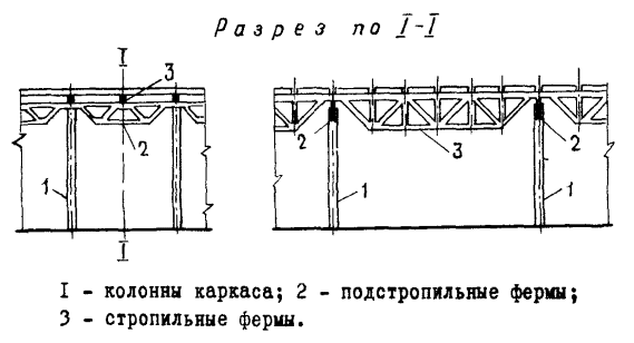 Для промышленных зданий с небольшими сосредоточенными нагрузками на колонны (до 100-150 т) может быть рекомендована постановка дополнительных связей между колоннами каркаса, превращающих каркас промздания в конструкцию, состоящую из плоских ферм, как показано на рис. 2.