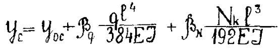 17. Вычисляем прогиб фундамента посередине пролета в т. C (см. рис. 6), где y0С принимаем равным прогибу в рассматриваемом сечении фундамента, найденному ранее при расчете фундамента как на сплошном упругом основании (без учета карстового провала), по формуле: