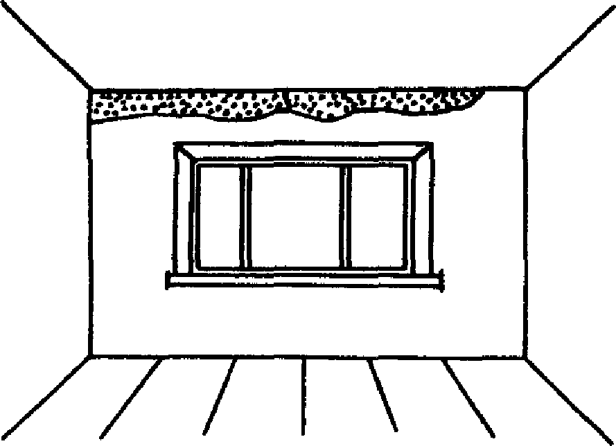 Мокрые пятна под потолком на наружной стене, имеющие вытянутую остроконечную форму |